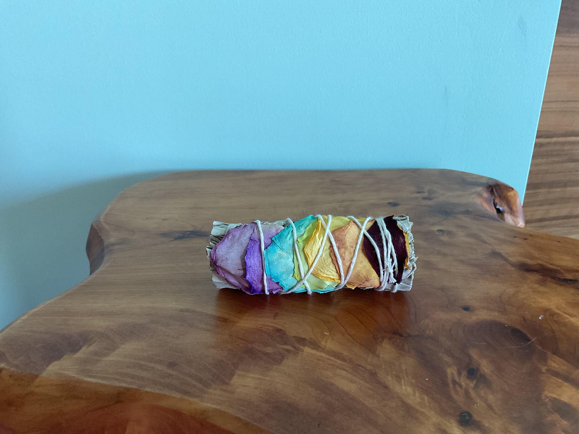 4 inch Sage with dried Chakra flower pedals